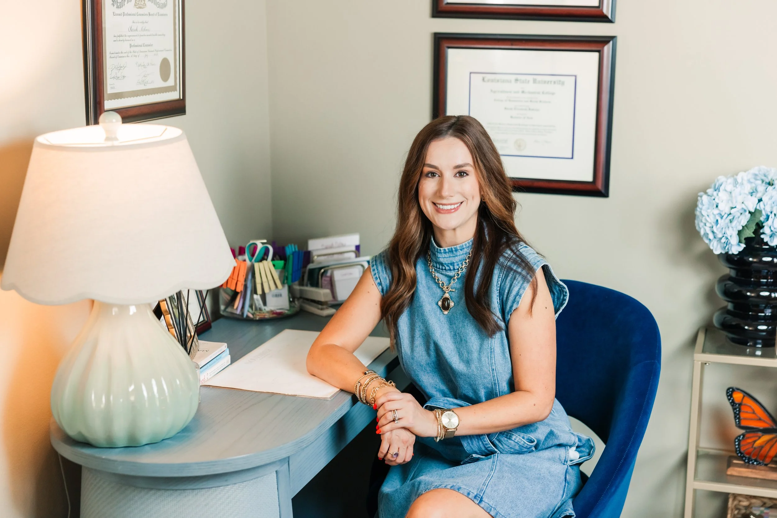 Second Story Counseling Co. was founded in 2025 by Sarah Nelms and Sarah Oldendorf, both Licensed Professional Counselors born and raised in Baton Rouge, Louisiana. Although they grew up in the same city, their paths didn’t cross until years later, when they found themselves working side-by-side as high school counselors. What began as collegial collaboration quickly revealed something deeper—a shared way of seeing people, relationships, and the kind of care they believed therapy could be.